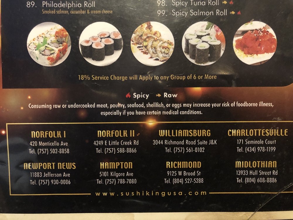 Introducing Sushi King: Located in Norfolk, VA, Sushi King is a trendy sushi bar offering a range of amenities such as reservation options, delivery, and takeout services. With a casual and comfortable ambiance, this restaurant caters to groups and families with its diverse menu and generous portions. Customers rave about the all-you-can-eat menu at a reasonable price, as well as the attentive service provided by the staff. Highlights include the hibachi dishes and friendly waitstaff, creating a warm and inviting dining experience. Despite some mixed reviews on the sushi rolls, Sushi King is praised for its value and variety of options. So, if you're looking for a satisfying meal in a cozy setting, Sushi King is worth a visit.